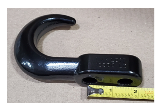 The tow hook is constructed with heavy-duty forged steel in black finish. The tow hook is designed to distribute weight when pulled while also holding the tow chain or strap in place. Use at home, work or recreation for all your towing, pulling and securing needs.