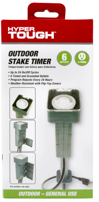 - Weather-Resistant Construction. Equipped with a flip-top cover to protect the timer dial and outlets from rain and debris.