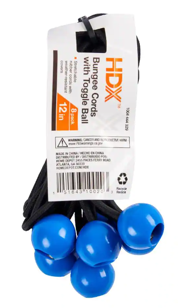 The HDX 12 in. Ball Bungee Cord is constructed with a durable outer jacket to withstand UV Rays and weather damage making it perfect for indoor and outdoor applications. Inside, premium rubber ensures optimal performance and elasticity for long-lasting repeated use. A plastic toggle ball at 1 end provides firm support and tension to secure your item in place. The ball bungee cord comes in a convenient 8-pack to secure multiple items.