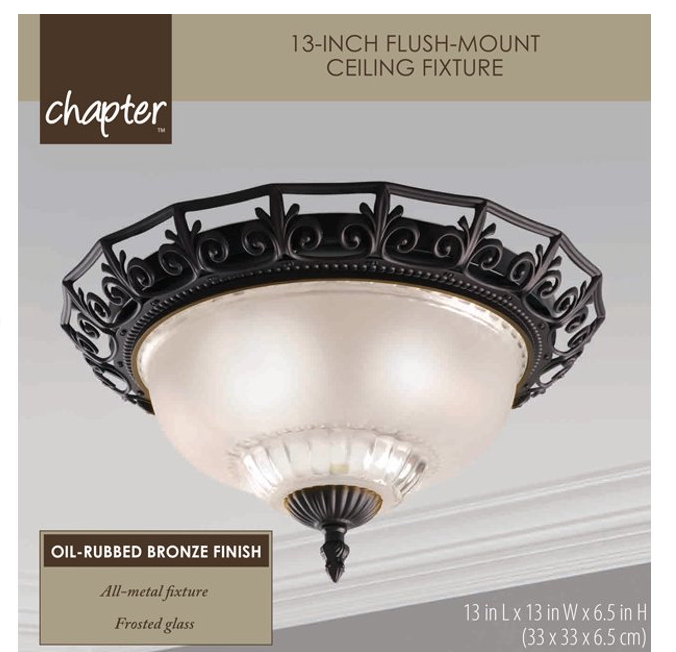The Chapter 13" Flush Mount Ceiling Fixture offers a classical and timeless aesthetic with modern functionality that will complement the interior decorof your home. The oil-rubbed bronze finish, all-metal sturdy decorative base will blend seamlessly with its surroundings, while the white frosted shade provides ample lighting. The smoothed domed glass shade offers wide coverage that illuminates the entire room and provides a bright glow that will surely be the focal point of any room. The ceiling flush mount reduces eye strain by providing uniformed bright light without the harsh glare of traditional lighting. Make a statement with the Chapter Flush Mount Ceiling Fixture. The Chapter Flush Mount Ceiling Fixture is ideal for living rooms, hallways, bedrooms, foyers, dining rooms, and other areas. The fixture uses two 60W wattage equivalent bulbs.