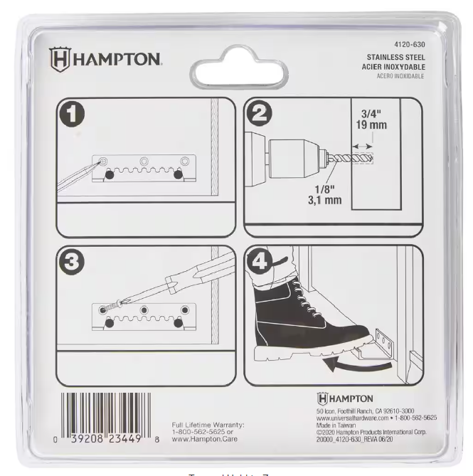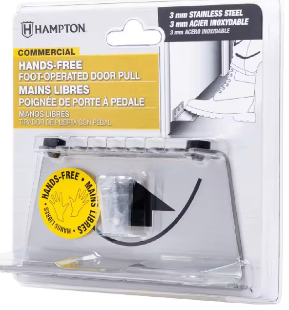 The Hampton 5" Hands-Free Foot Operated Door Pull allows users to open and close a door using only the foot. The Hands-Free Foot Operated Door Pull provides a sanitary option to avoid cross-contamination from touching public door handles. The door pull is manufactured from stainless steel for maximum durability and two rubber bumpers for wall protection. Installation is fast and easy, simply mount the device at the bottom of the door. Then step on to open and close.