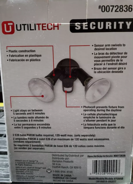 Stay safe by installing this Utilitech motion activated security light. It helps deter thieves and pests, making it an excellent safety measure. This 110-degree, two-head security light also gives you extra light just when you need it. It is a terrific way to know when guests have arrived at your house.
