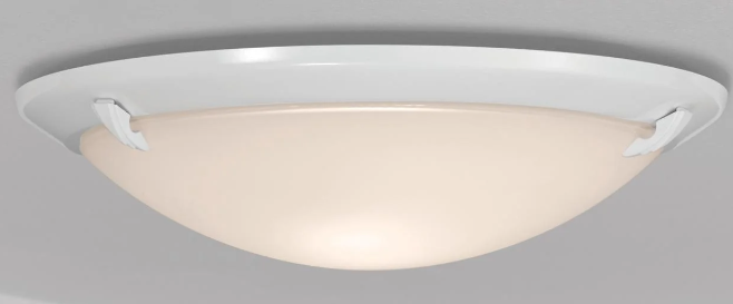 Mainstays 12-inch 1-Light Indoor Flush-Mount sturdy all-metal base and opaque white glass shade provide ample lighting. It offers broad coverage that illuminates the room and provides a warm, bright glow. The flush mount is ideal for living rooms, hallways, bedrooms, foyers, closets, dining rooms, and other indoor areas. Recommended bulb (not included): 60W Incandescent Bulb, 9W LED Bulb, or 13W CFL Bulb.