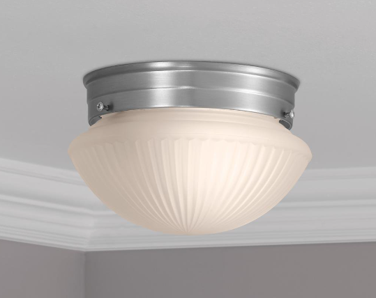 The Mainstay 7-inch traditional ceiling flush mount offers a simplistic modern aesthetic that will complement your home's interior décor. The Satin Nickel finish and the sturdy all-metal base will blend seamlessly with its surroundings. In addition, the white frost shade provides ample coverage that illuminates the entire room and provides a bright glow. The flush mount is ideal for living rooms, hallways, bedrooms, foyers, closets, dining rooms, and other areas. Recommended bulb (not included): 60W Incandescent Bulb, 9W LED Bulb, or 13W CFL Bulb.