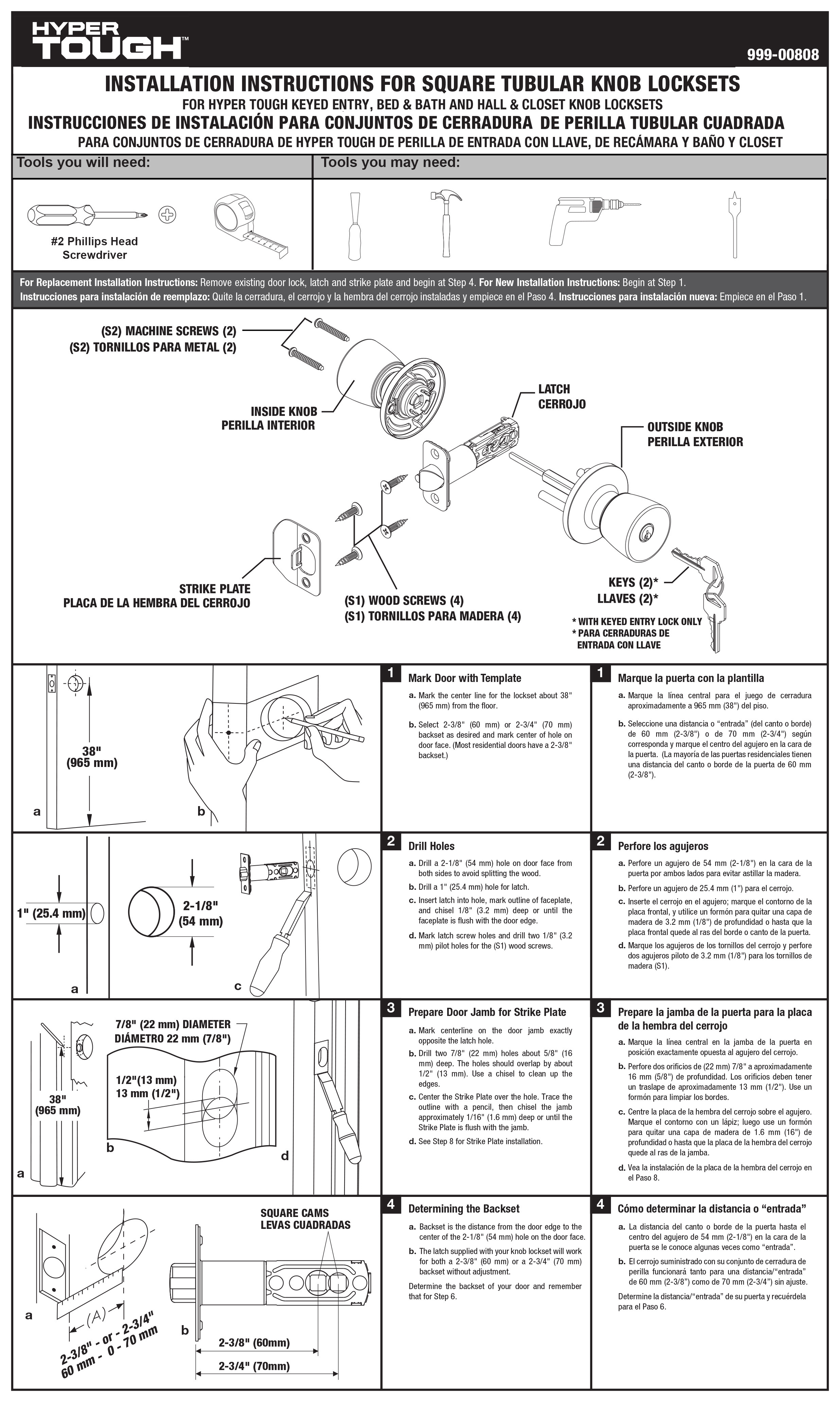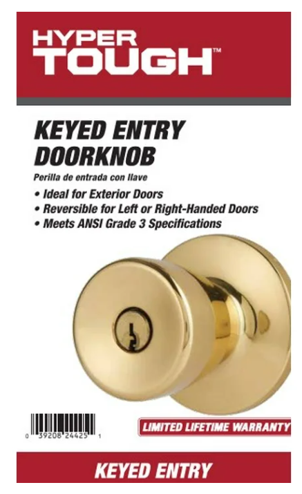 The latch mechanism is operated by the Door Knob from either side. Operate the Door Knob by locking and unlocking with a key on the exterior and by a thumb turn on the interior. The keyed entry knob is ideal for exterior installation such as the front, back and side door where locking is required.