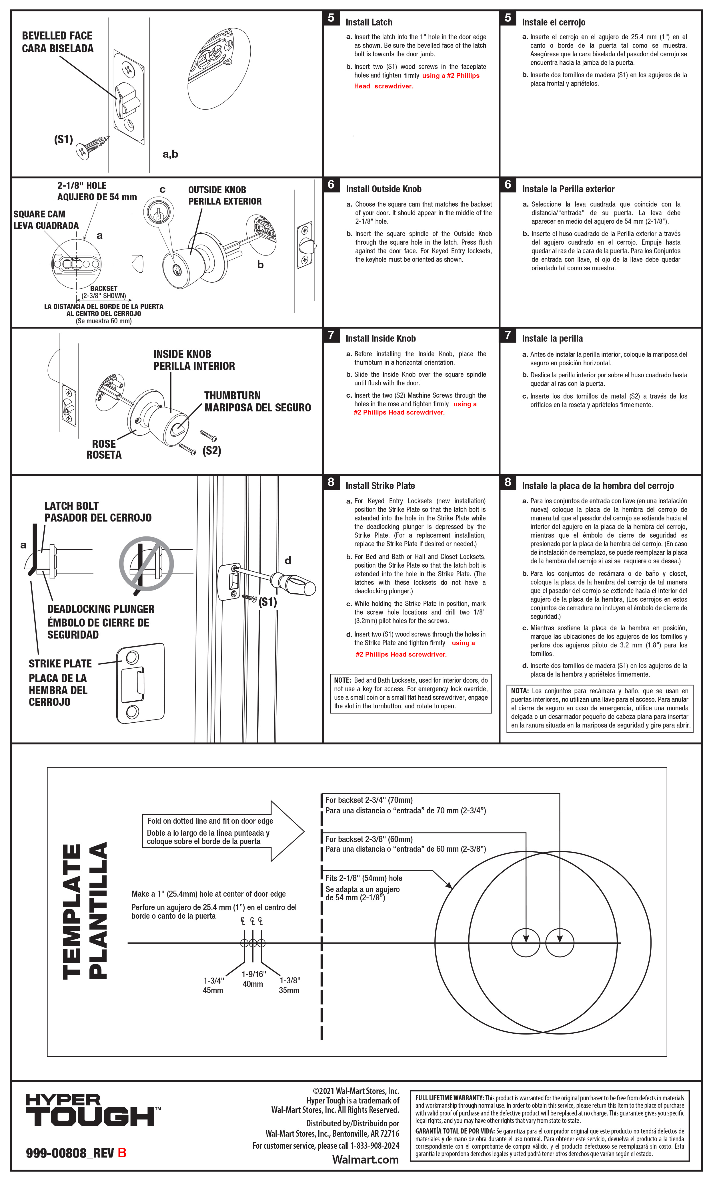 - Adjustable latch for 2-3/8" or 2-3/4" backsets