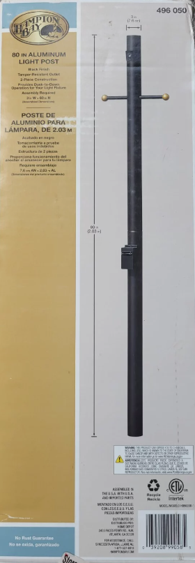 Accent your outdoor decor with the Hampton Bay Black Lamp Post. Boasting a 2-piece design for quick and easy assembly, its sleek black finish offers a sophisticated look that perfectly suits your residential lighting needs. Its lightweight design allows for easy placement anywhere around your patio. A strong, aluminum construction offers long-lasting durability.