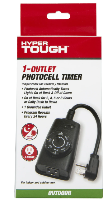 - The built-in photocell detects ambient light and automatically turns the connected device on at dusk.
