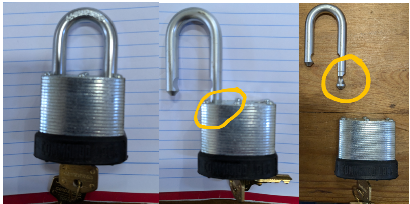 Commando Lock owns the patent on the interchangeable shackle system with no tools required. This allows for our lock body to use a cable, long shackle or short shackle with the twist of a key!